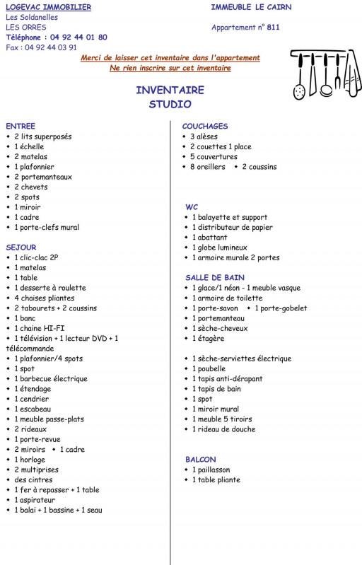 - Le linge, ménage et la location de parking peut être proposée par votre hébergeur après votre réservation. Les coordonnées seront inscrites sur votre contrat ainsi que sur votre bon d'échange.
