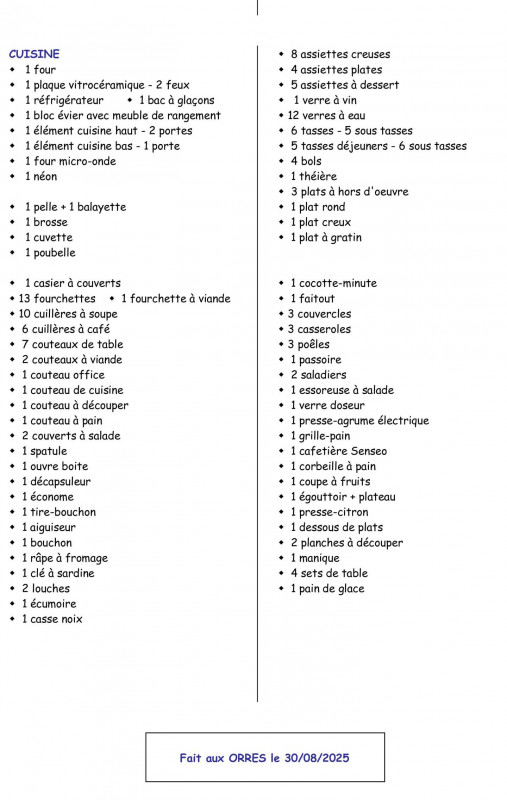 - Equipement Cuisine :